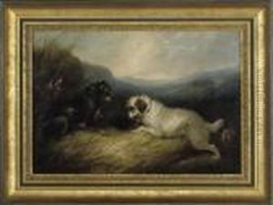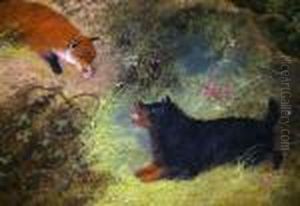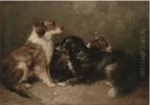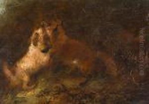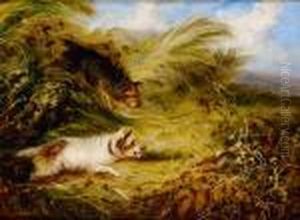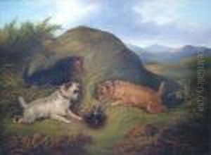 Arnfield The Mouse Hole, Three Terriers, Signed Oil On Canvas, 31x41cm