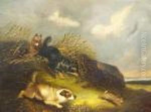 Two Spaniels With A Pheasant