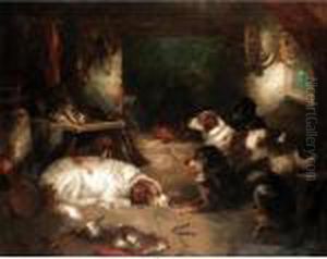 Dogs Ratting In A Barn.