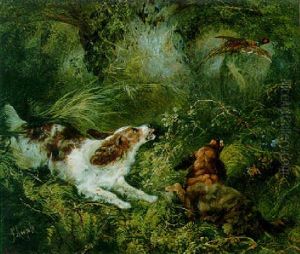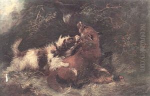 Setters With Pheasant And Partridge And Fox