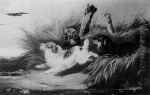 Spaniels Startling A Duck Into Flight (+ A Terrrier And A Fox Fighting Over A Pheasant, Smlr; 2 Works)