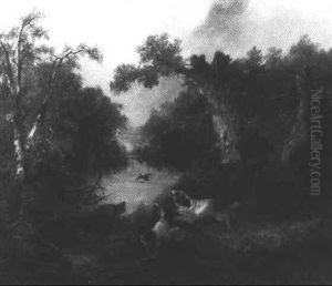 A Sportsman With His Dogs, By A Stile, A Wood Beyond