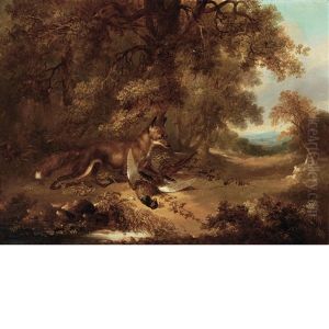 Terriers Surprising A Fox With Its Kill Of A Cock Pheasant