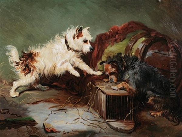 Bring the timeless beauty of George Armfield's Terriers In A Landscape into your home with a handmade oil painting reproduction. Carefully recreated on canvas by skilled artists using traditional techniques, this piece captures the delicate brushwork, subtle light, and vibrant color of the original masterpiece. With museum-level quality and rich texture, it brings elegance and artistic depth to any space. Enjoy free shipping and make this masterpiece a part of your personal collection.