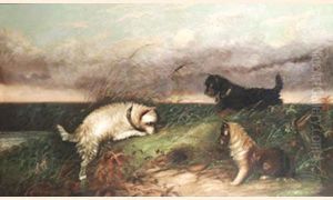 Terriers Rabbiting Oil Painting by George Armfield
