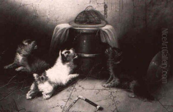 Three Dogs Ratting Oil Painting by George Armfield