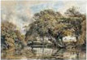Trees On The Banks Of A Lake At Dusk, Probably Near Bristol