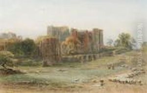 Shepherd And Cattle Before Abbey Ruins, The Coast Beyond
