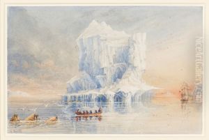 Admiral Sir George Back shows HMS Terror anchored near a cathedral-like iceberg in the waters around Baffin Island