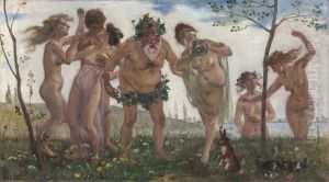 Bacchus enthroned served by Boys with Attendant Bacchantes