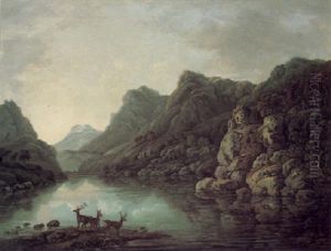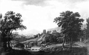 Extensive Landscape With Animals Fording A Stream, Castle Beyond