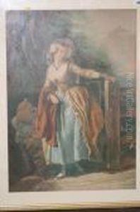 Print, Lady Walking Through A Gate Oil Painting by George Baxter