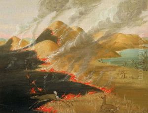 Indian Family Alarmed at the Approach of a Prairie Fire