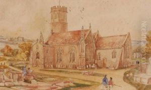 An English Country Church With Figure Of A Woodcutter Standingin The Foreground