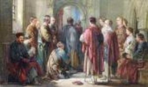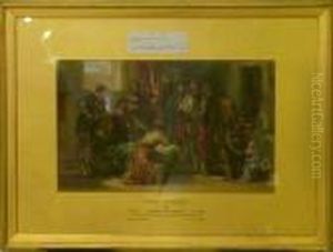 ] Medieval Figures By A Tomb In A Church Interior