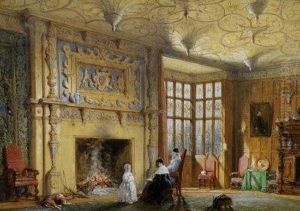 Figures Beside A Fireplace In An Elizabethan Interior