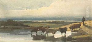 Drovers Guiding Cattle Over a Bridge