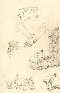 Studies of oriental figures and a cow
