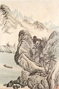 Gouache Chinese River Scene With Figures