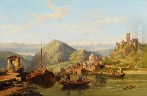 Stadt Am Rhein Mit Blick Auf Die Burgen "katz" Und "maus"