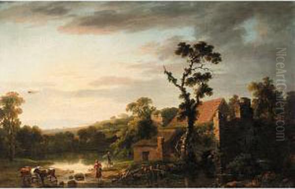 Landscape With Rustics And Cattle By A House In The Foreground