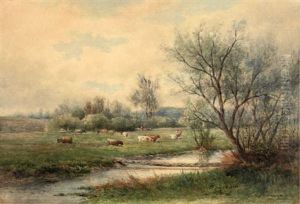 Landscape With Stream And Cows