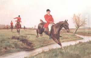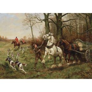 A Hunt In The Foreground, With A Boy Running Beside A Runaway Horse And Timber Wagon