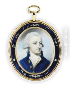 Robert Barwell, Wearing Blue Coat, White Waistcoat, Frilled Chemise And Stock, His Powdered Hair Worn En Queue And Tied With A Black Ribbon Bow