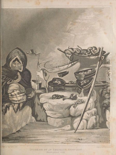 Interior of an Eskimaux snow-hut. Winter Island, 1822.