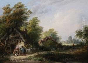 Scandinavian Cottage Scene With Chickens