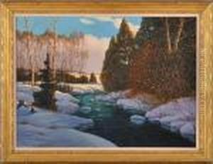 Winter Scene With Brook And Houses