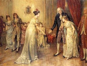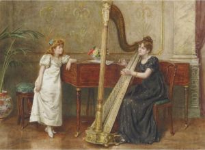 Mother And Child On A Chaise Longue In A Victorian Interior