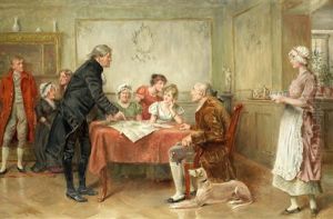 A Landscape At Dawn With Travellers By A Fire With Their Horses Tethered