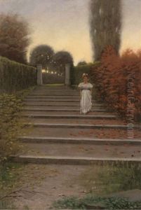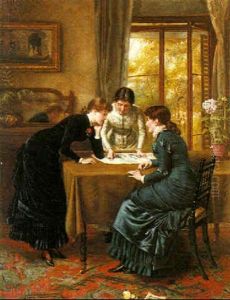 Portrait Of A Girl In A White Dress In An Interior, Holding A Book