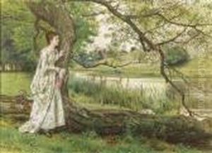 Lady Seated Beneath A Tree By The River Bank