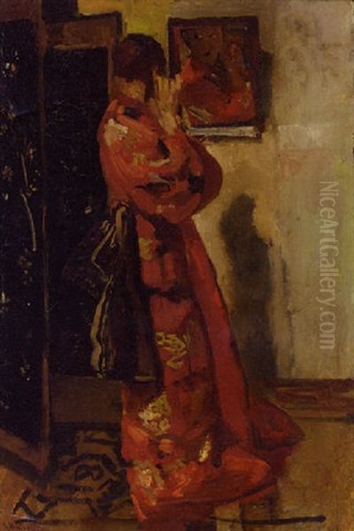 Bring the timeless beauty of George Hendrik Breitner's Voor De Spiegel into your home with a handmade oil painting reproduction. Carefully recreated on canvas by skilled artists using traditional techniques, this piece captures the delicate brushwork, subtle light, and vibrant color of the original masterpiece. With museum-level quality and rich texture, it brings elegance and artistic depth to any space. Enjoy free shipping and make this masterpiece a part of your personal collection.