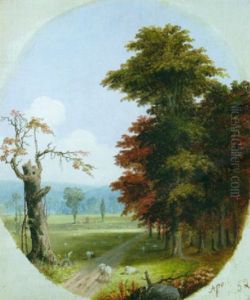 Summer Landscape With Cows, East Rock, New Haven (+ Summer Landscape With Cows At River; Pair)