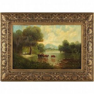 Cattle Near A Stream (+ Another; Pair)