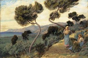 Figures Resting On A Tree-lined Path