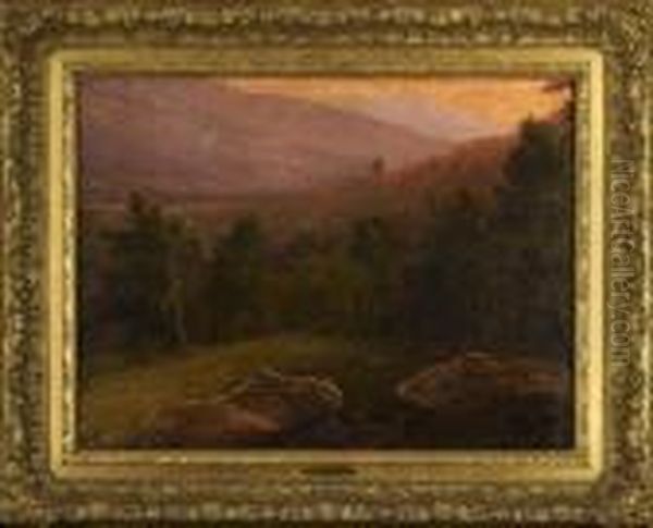 Wooded Mountain Landscape With Figures Resting In A Clearing