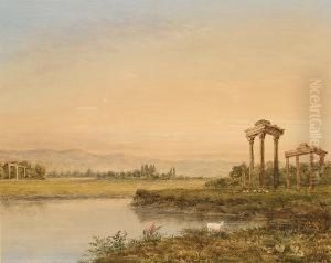 An Italian Landscape With Classical Ruins