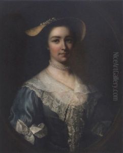 Portrait Of Mrs. Knight, In An Oyster Satin Gown With Blue Ribbons And A Bonnet, Holding A Partridge And Chicks
