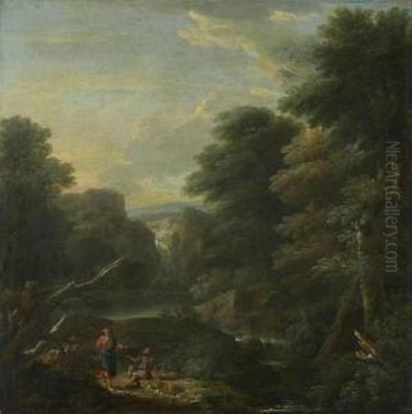 Arkadische Landschaft Mit Figurenstaffage.