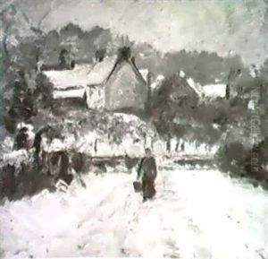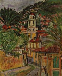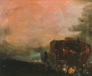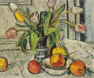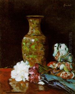 Oriental Bronze Vase And Cover, Tea Caddy, Fruit Bowl And Oranges On A Table