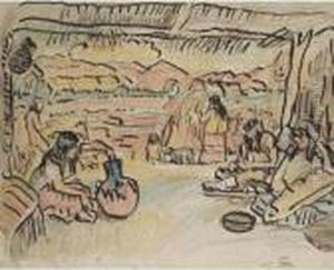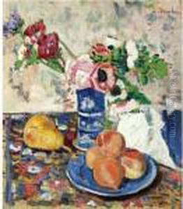 Girl In A Red Pullover, Seated On Sofa, And Flowers, Recto ; Still Life With Melon And Grapes, Verso