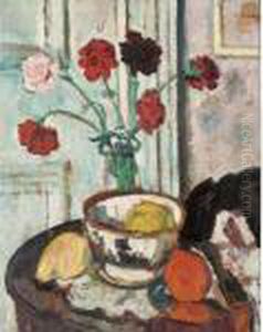 Still Life With A Chinese Vase, Bowl Of Cherries And White Roses