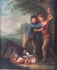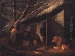 Landscape With A Figure Climbing Up To A Hay Loft, And A Pig