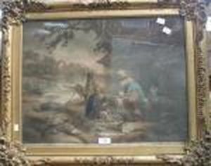 A Drover And Cattle Resting In A Wooded Landscape