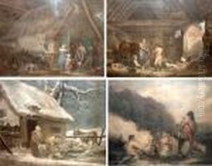 A Traveller Taking Refreshment Outside A Cottage In Winter
