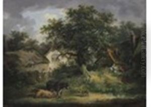 A Donkey And Pig In A Farmyard; And Sheep In A Pasture